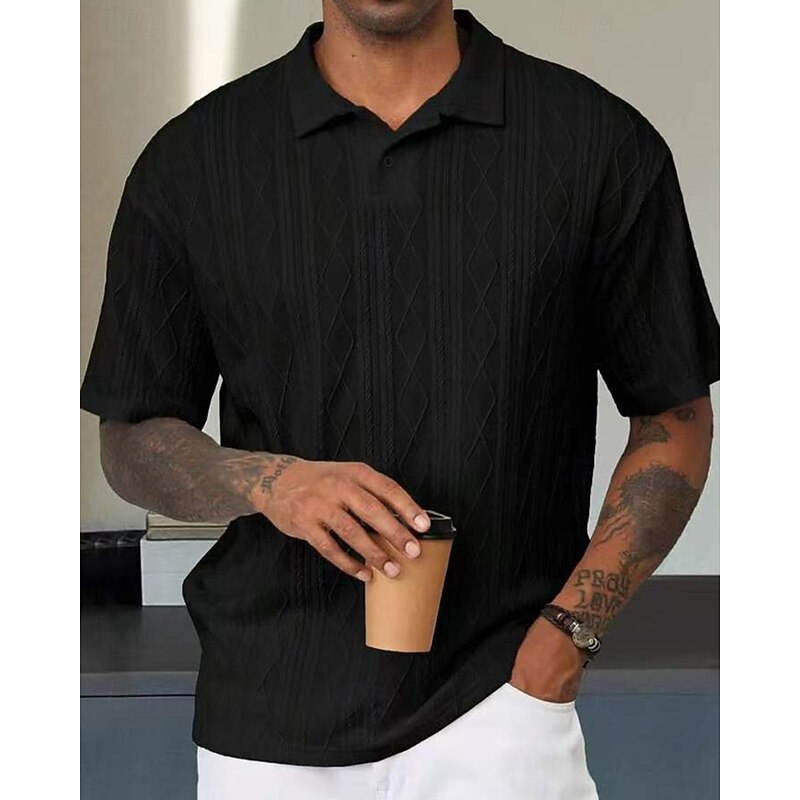 More information about Men's Golf Shirt Golf Polos Shirts Work Casual Lapel Short Sleeve Basic Modern Plain Buttons Jacquard Summer Regular Fit Black White Blue Khaki Army Green Gray Golf Shirt