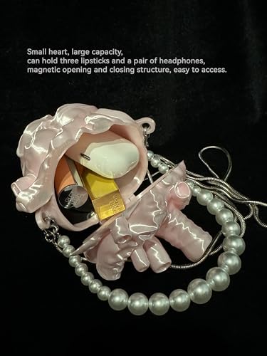 HOT ! IMOJI Anatomical Heart Shaped Crossbody Bag with Pearl Chain Strap, Pink