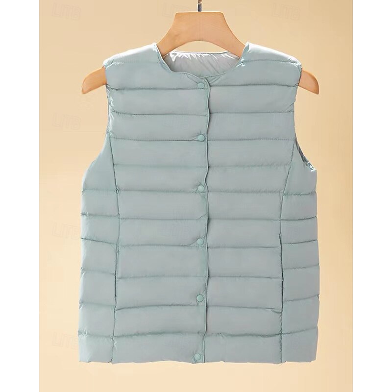 More information about Women's Vest Warm Comfortable Buttons Casual Plain Vacation Weekend Single Breasted Regular Crewneck Regular Fit Sleeveless Outerwear Black White Sky Blue Fall Winter
