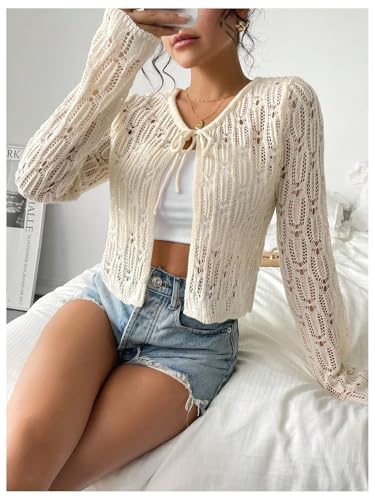 • Features: Tie front, hollow out, v neck, long sleeve, knitwear, lightweight, cropped cardigan sweater for women