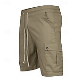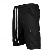 More information about Men's Cargo Shorts Shorts Linen Shorts Summer Shorts Beach Shorts Drawstring Elastic Waist Multi Pocket Plain Comfort Breathable Knee Length Outdoor Daily Going out Fashion Classic Style Black Sky
