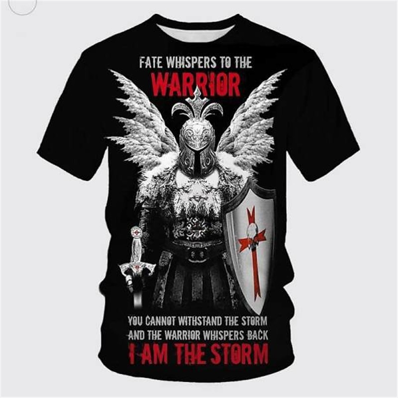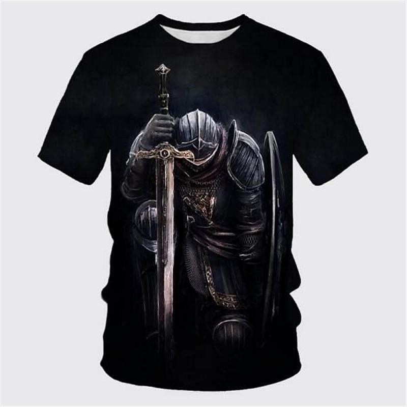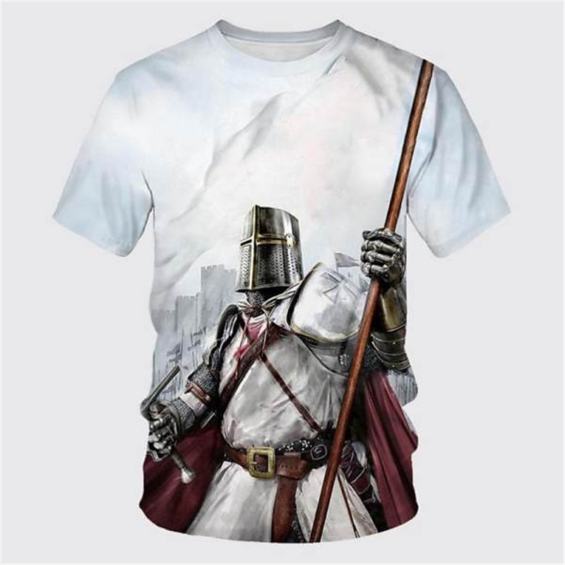 Men's Templar Cross Graphic Prints Soldier T Shirt Christian T Shirts Short Sleeve T shirt 3D Print Crew Neck Shirt Vintage Sports Designer Outdoor Street Daily Black / Gray Black+Black Black Summer 20