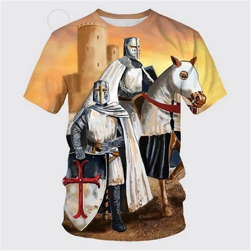 Men's Templar Cross Graphic Prints Soldier T Shirt Christian T Shirts Short Sleeve T shirt 3D Print Crew Neck Shirt Vintage Sports Designer Outdoor Street Daily Black / Gray Black+Black Black Summer 21