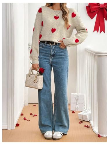 More information about Verdusa Women's Bow Slit Coquette Pullover Sweaters Y2k Streetwear Heart Print Sweater Knit Tops