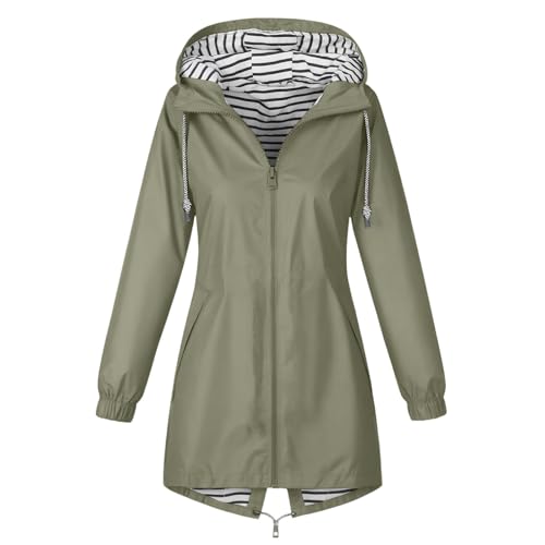 HOT ! ABABC Rain Jacket Women Zip Up Long Sleeve Hooded Waterproof Jacket Casual Lightweight Outdoor Raincoat with Pockets