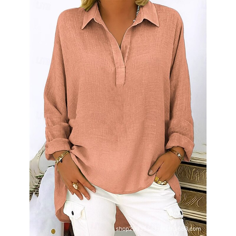 More information about Women's Cotton Linen Shirts Solid Color Basic Casual Long Sleeve V Neck Regular Tops Daily Pink Blue Green Gray Summer Spring Fall