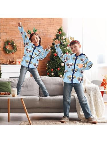 Dog Wearing Sunglasses Girls Fleece Jacket Girls Fall Jacket Boys Coats Zip Up Hoodie Children Sherpa Warm Outerwear 2-10T 2