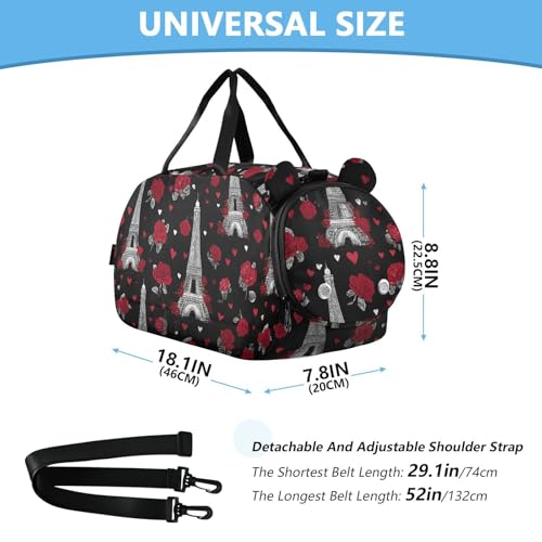 More information about Duffle Bag for Boys or Girls with Shoes Compartment, Eiffel Tower Rose Sports Travel Bag Overnight