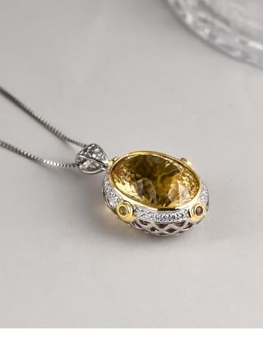 More information about 15 * 20mm Oval Amethyst or Citrine Pendant Necklace - Unique Avant-Garde Design, S925 Sterling Silver with 18K Gold Plated Amethyst Pendant, 17.7-19.68 inch Adjustable Delicate Collarbone Chain.