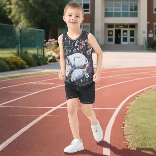 Fox Floral Garden Black Boys Tank Tops Sleeveless Tank Top Shirts Undershirts for Kids,3T 6