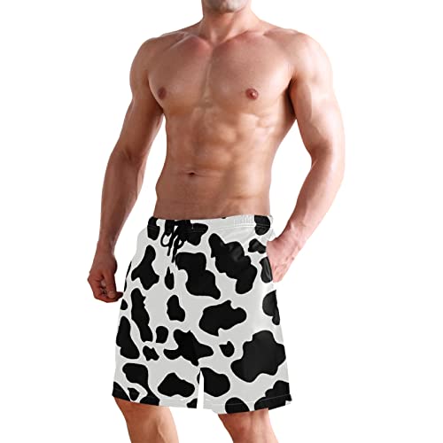 HOT ! Men's Cow Print Shorts Drawstring Swim Trunks with Pockets and Mesh Lining
