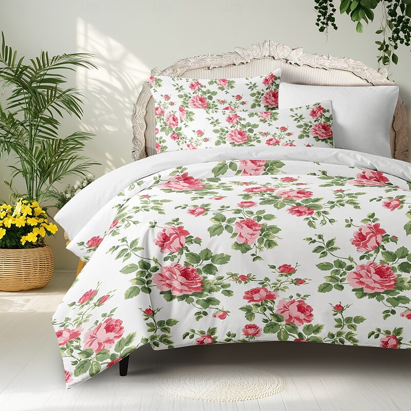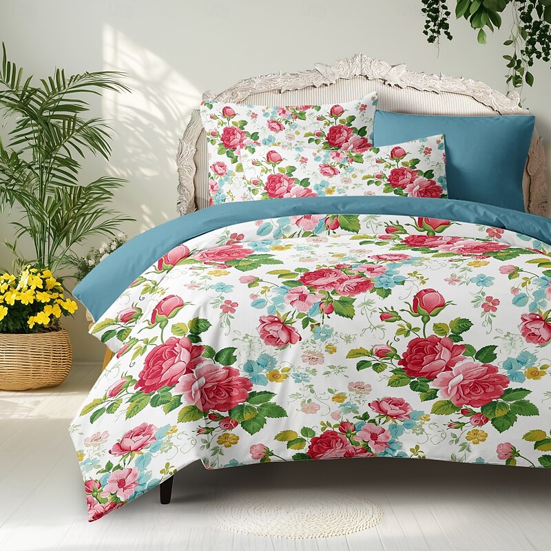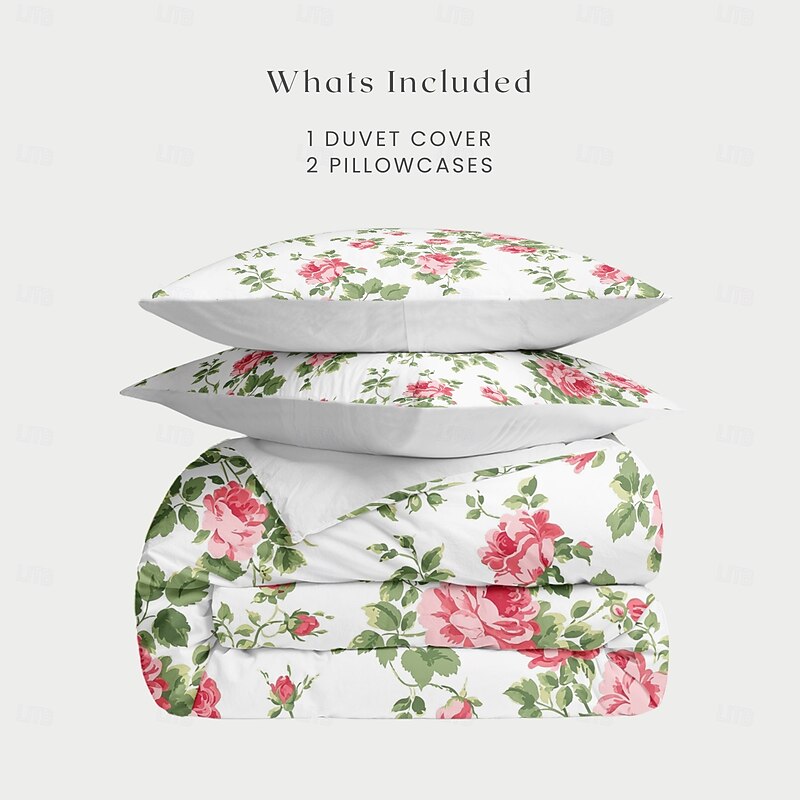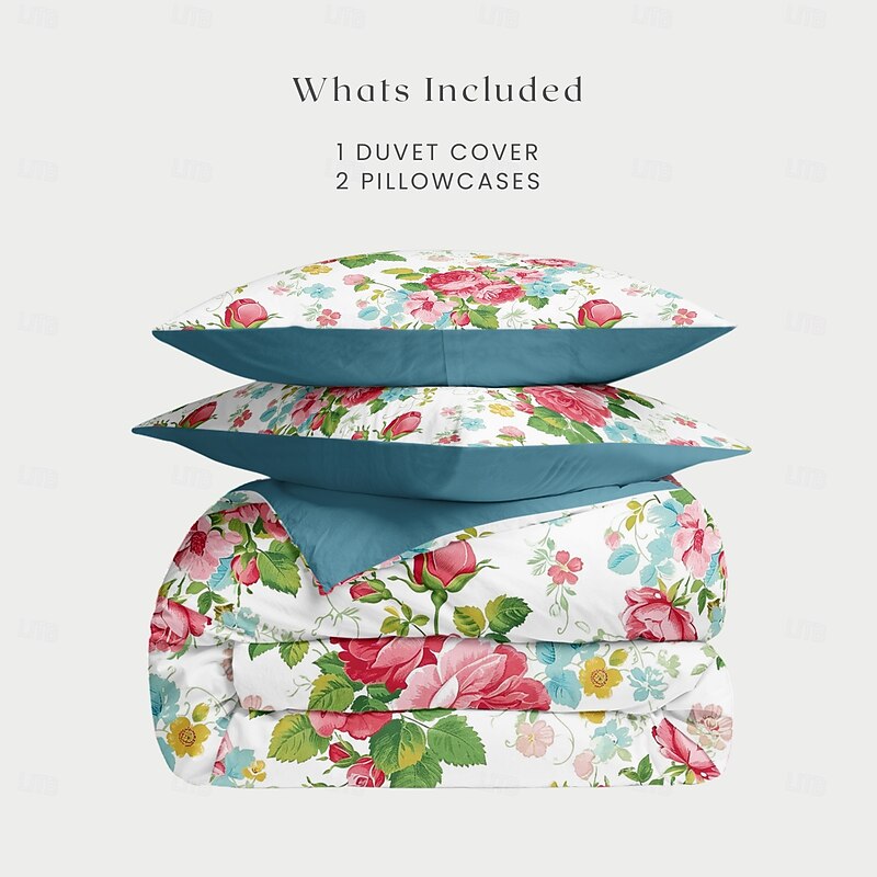 100% Cotton Duvet Cover Set Floral Pattern Set Soft 3-Piece Luxury Bedding Set Home Decor Gift King Queen Duvet Cover 3