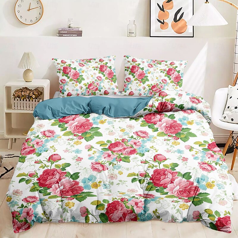 100% Cotton Duvet Cover Set Floral Pattern Set Soft 3-Piece Luxury Bedding Set Home Decor Gift King Queen Duvet Cover 5