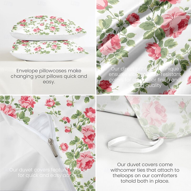 100% Cotton Duvet Cover Set Floral Pattern Set Soft 3-Piece Luxury Bedding Set Home Decor Gift King Queen Duvet Cover 4