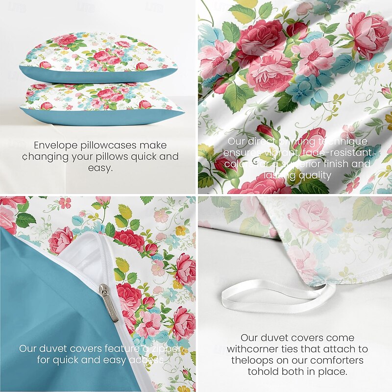 100% Cotton Duvet Cover Set Floral Pattern Set Soft 3-Piece Luxury Bedding Set Home Decor Gift King Queen Duvet Cover 14