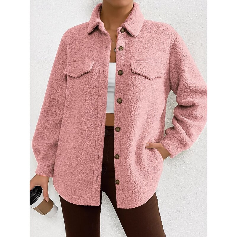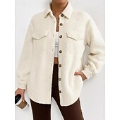 More information about Women's Fleece Jacket Comfortable Breathable Pocket Buttons Casual Plain Vacation Street Casual Daily Wear Single Breasted Regular Turndown Regular Fit Long Sleeve Outerwear Black White Pink Spring