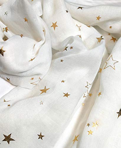 • Beautiful white scarf printed with shining golden stars