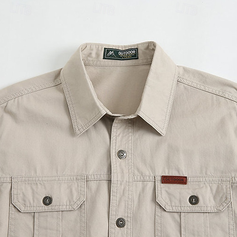 Men's Shirt Workwear Shirts Casual Shirt Work Shirt Button Up Shirt Cargo Shirt Black khaki Army Green Beige Gray Long Sleeve Plain Lapel Vacation Hawaiian Front Pocket Clothing Apparel 100% Cotton 15