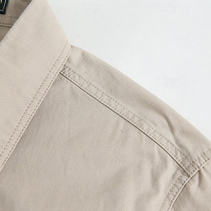 More information about Men's Shirt Workwear Shirts Casual Shirt Work Shirt Button Up Shirt Cargo Shirt Black khaki Army Green Beige Gray Long Sleeve Plain Lapel Vacation Hawaiian Front Pocket Clothing Apparel 100% Cotton