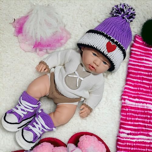 More information about Handmade Gender Neutral Baby Crochet Purple Sneakers & Beanie Set - Soft Sole, Customizable, Perfect for Newborn Boys & Girls