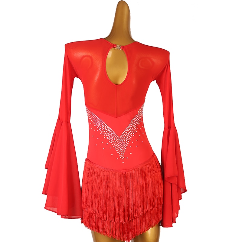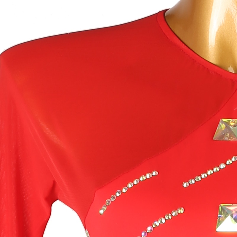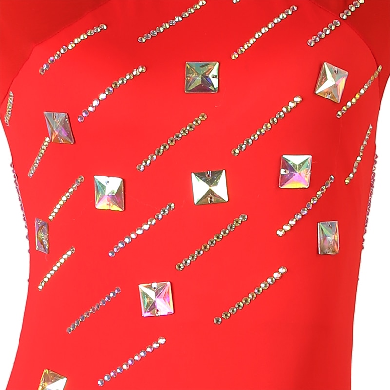More information about Figure Skating Dress Women's Girls' Ice Skating Dress Red Patchwork Open Back Mesh High Elasticity Training Competition Skating Wear Classic Long Sleeve Ice Skating Figure Skating