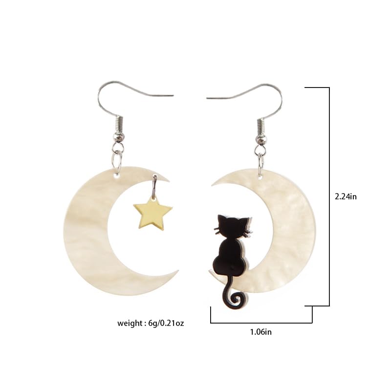 • Unforgettable Halloween Costume - These spooky creepy ghost dangle witch cute cat moon earrings for women are the perfect accessory to elevate your Halloween look with a touch of playful fright.