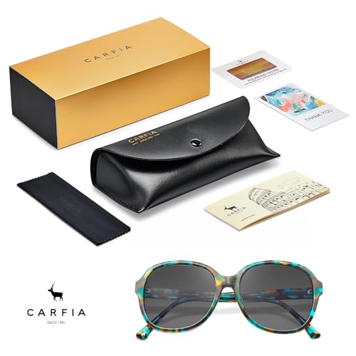 • Turquoise Sunglasses for Women Polarized UV Protection - Carfia polarized womens sunglasses are effective UV filter, since lens block 100% harmful UVA/UVB rays up to 400nm then protect eyes from squinting/fatigue/wrinkles. Polarized lens also eliminate 99% glare to offer vibrant saturated color, crisp clarity, and unsurpassed details.
