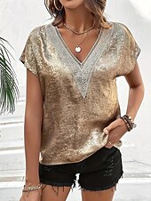 More information about Women's Sequin Sparkly Party Glitter Plain Fashion Modern Short Sleeve V Neck Regular Tops Daily Sequins Patchwork Gold Summer