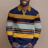 More information about Men's Stripes Polo Rugby Polo Shirts Long Sleeve Polo Shirts Collared Shirts Casual Outdoor Athleisure 3D Print Spring Fall Yellow