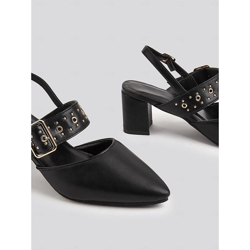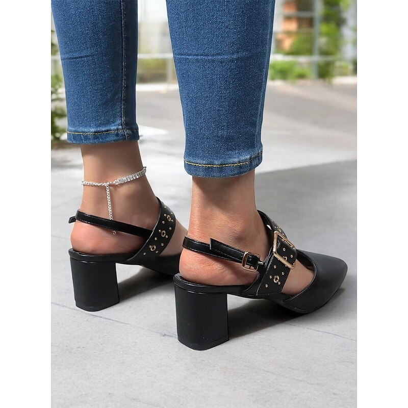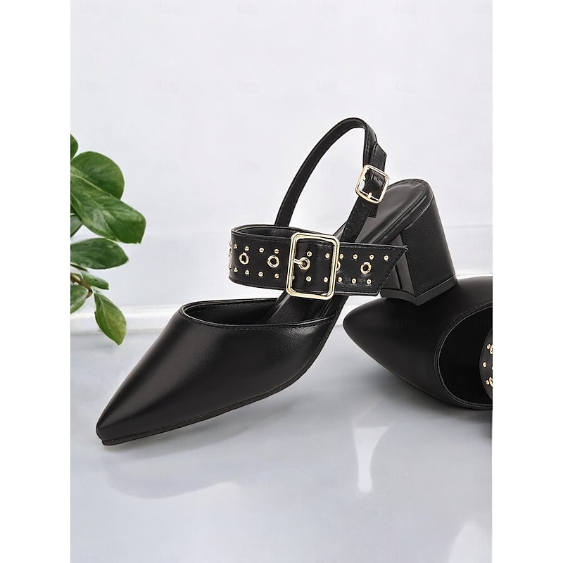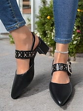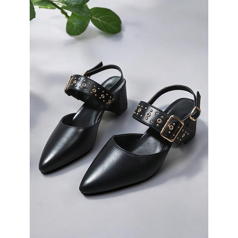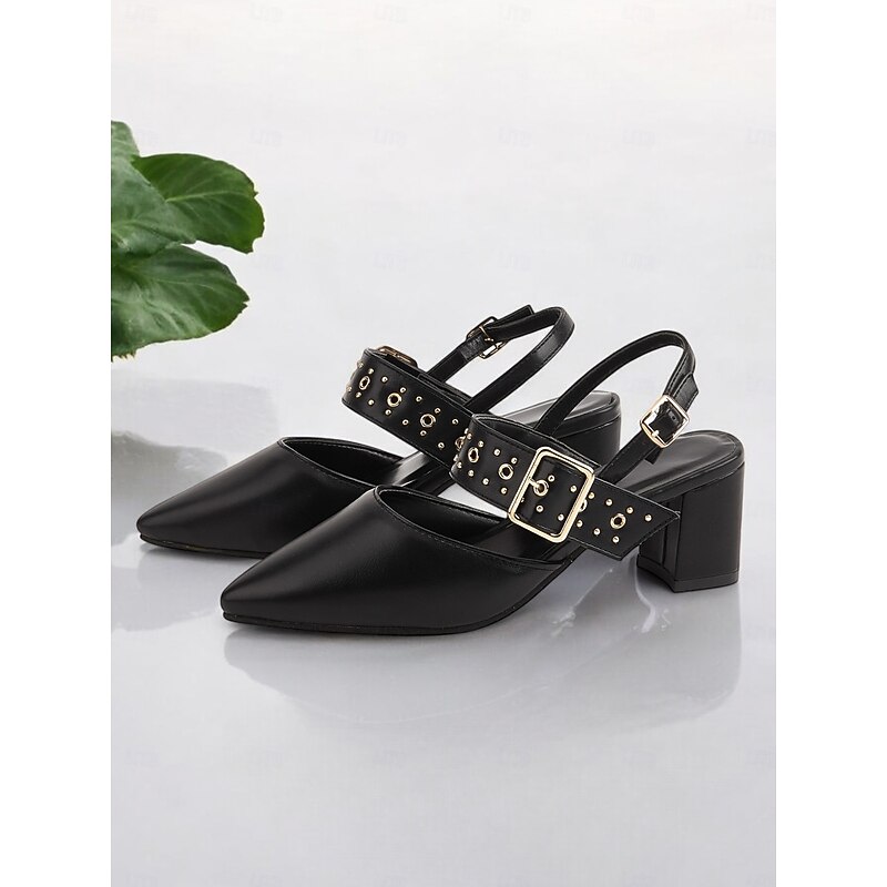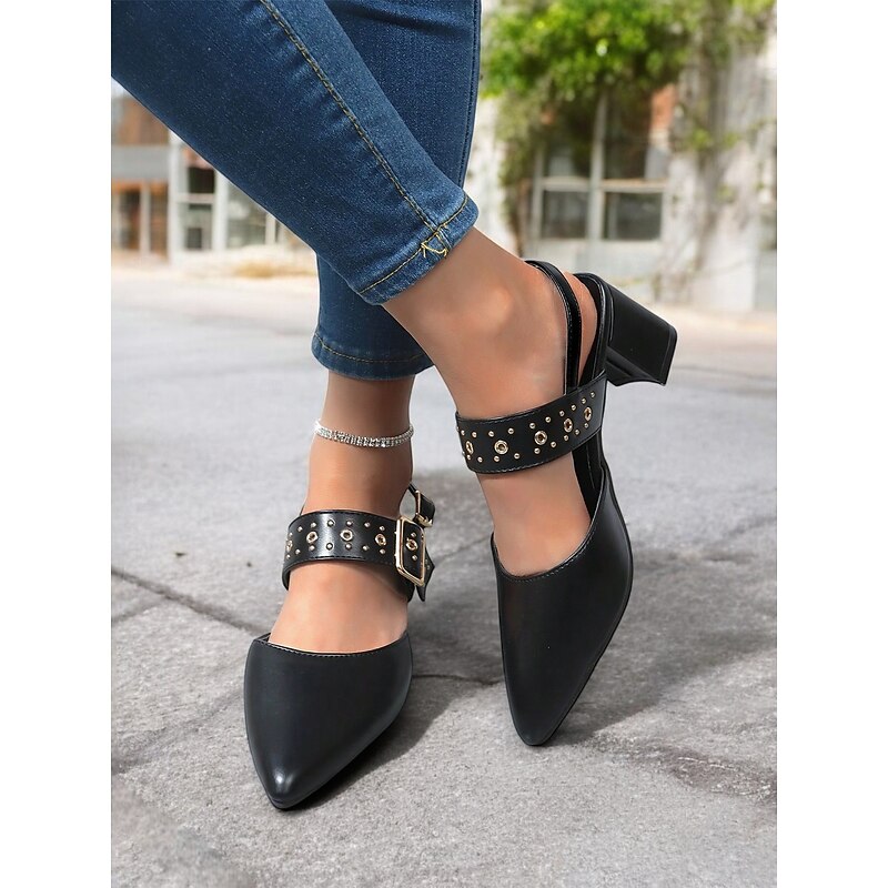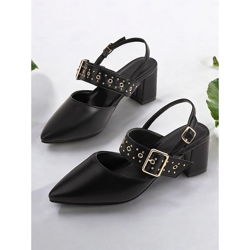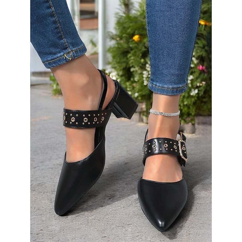 Highlights - Featuring faux leather upper for a sleek and luxurious look - Adorned with a stylish buckle embellishment for added flair - Designed with a chunky heel for stability and all-day comfort - Pointed toe shape for a chic and sophisticated appearance - Durable rubber outsole for long-lasting wear - Stay on trend in 2024 with these comfortable and fashionable shoes