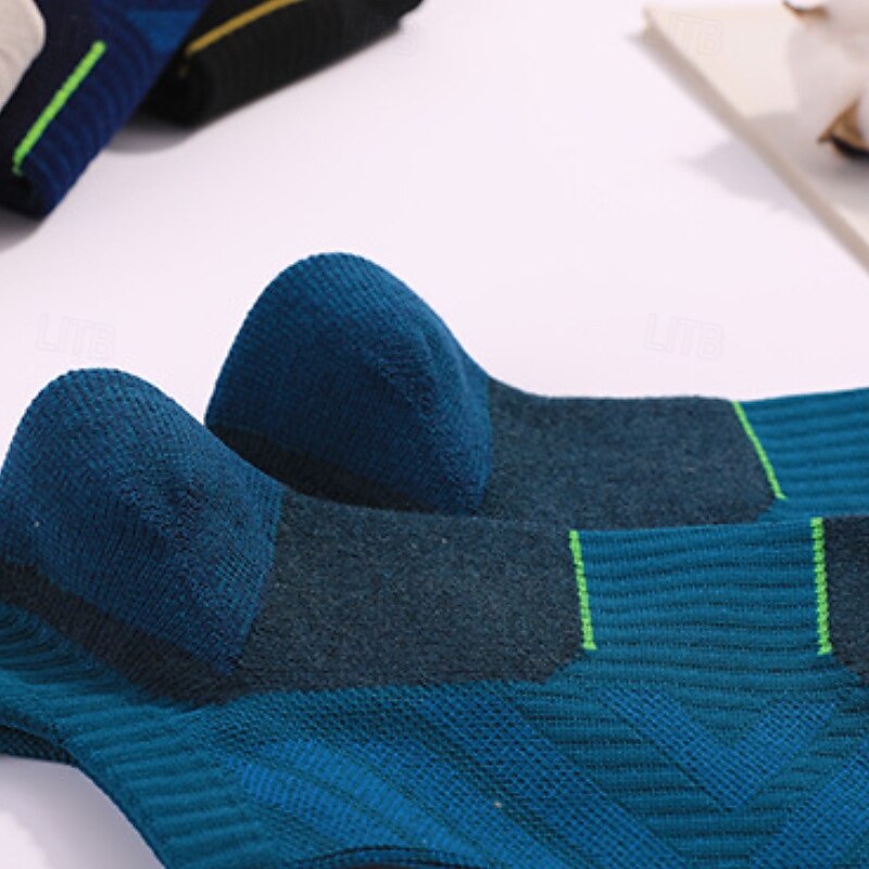 1 Pair Men's Women's merino wool socks Running Socks Sports Socks Thermal Warm Breathable Anti Blister Thick Outdoor ankle Patchwork Merino Wool Navy Black White for Ski / Snowboard Running Camping 5