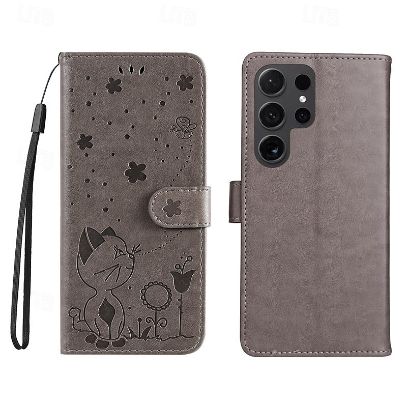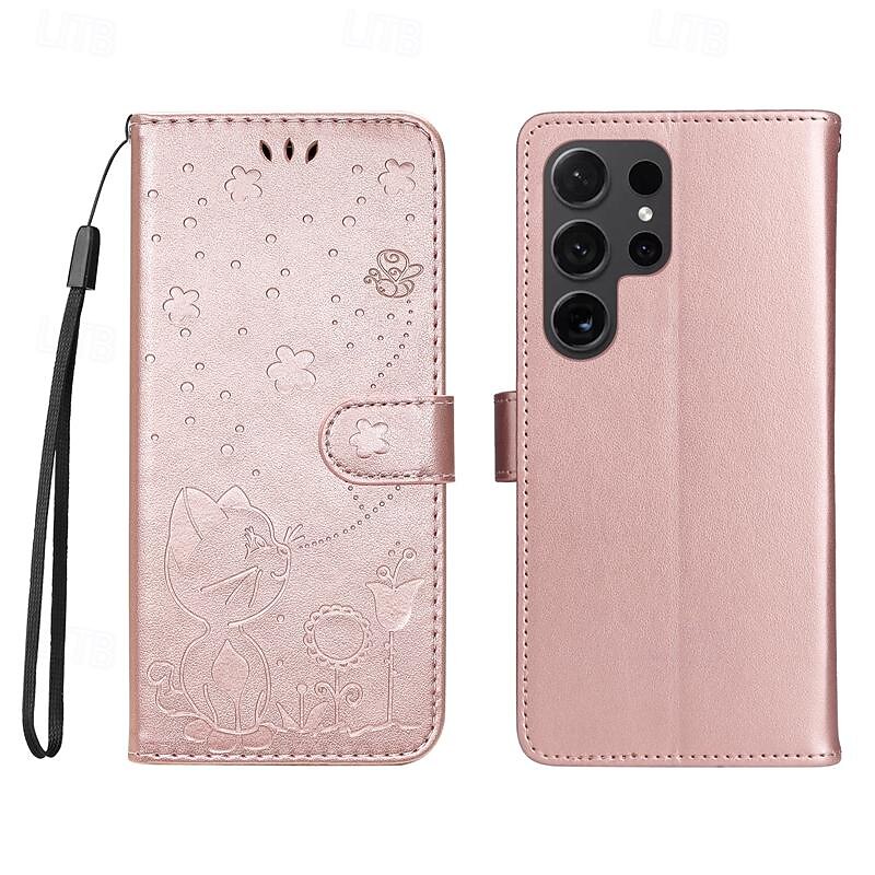 HOT ! Phone Case For Samsung Galaxy S25 S24 S23 S23 FE S22 S21 Ultra Plus A55 5G A35 5G A25 A15 Wallet Case Magnetic Full Body Protective with Wrist Strap Cat Bee TPU PU Leather