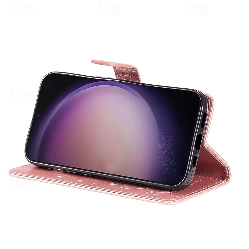 More information about Phone Case For Samsung Galaxy S25 S24 S23 S23 FE S22 S21 Ultra Plus A55 5G A35 5G A25 A15 Wallet Case Magnetic Full Body Protective with Wrist Strap Cat Bee TPU PU Leather