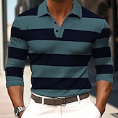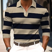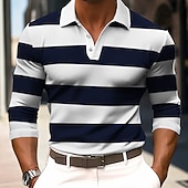 More information about Men's Striped Rugby Polo Long Sleeve Polo Shirts Collared Shirts Sportswear Casual School Outdoor Office Daily Wear Buttons Spring Fall Winter White Blue Brown