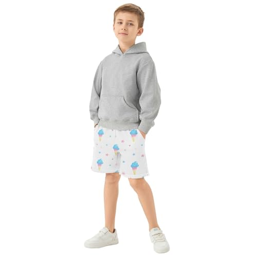 J JOYSAY Icecream Star Shape White Boys Athletic Shorts Kids Youth Casual Shotrs with Pockets Elastic Waistband 4