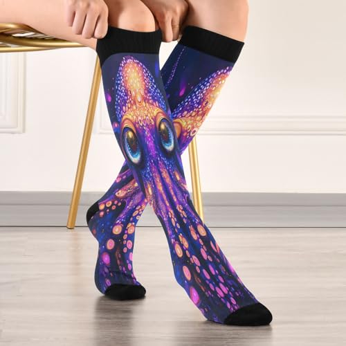 ALAZA Kraken Magic Compression Socks for Women Men Unisex Knee High Stockings for Running Athletic 7