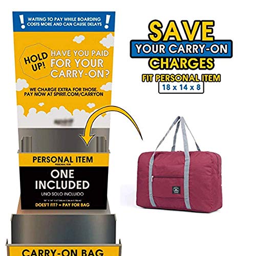 • 2 PACKTravel Bags: Size -- Unfolded size: 17.7" x 12.6" x 6.3", folded size: .6.7" x 7.5" x 1"; 4 colors for you to choose: wine red, navy blue, sky blue, light pink. fits personal of Spirit Airlines & Frontier Airlines perfectly, which can be placed under seat and no need to pay carry-on.