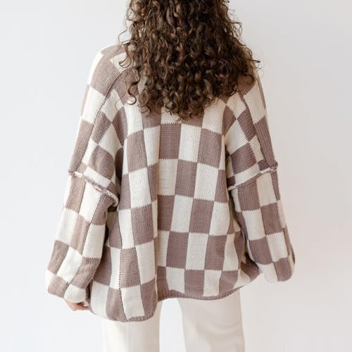 Womens Checkered Cardigan Sweater Loose Long Sleeve Open Front Sweater Knit Coat Casual Oversized Plaid Cardigan Tops 5
