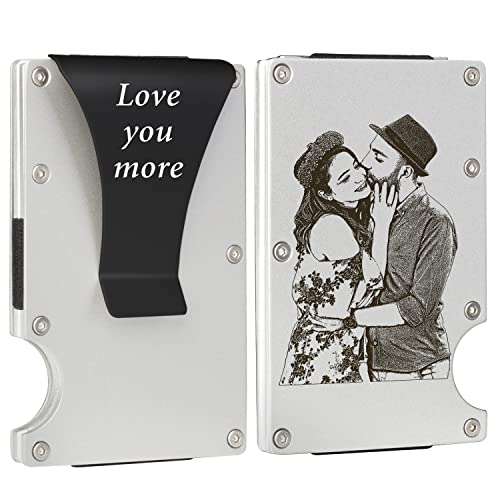 HOT ! awofer Personalized Wallets for Men Photo Gifts Custom Aluminum Wallet with Money Clip Engraved Credit Card Holder Husband BF Dad Son Groomsmen Gifts