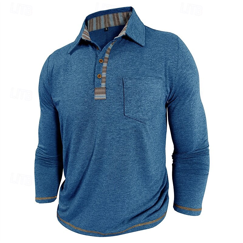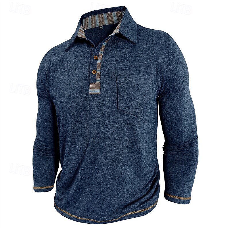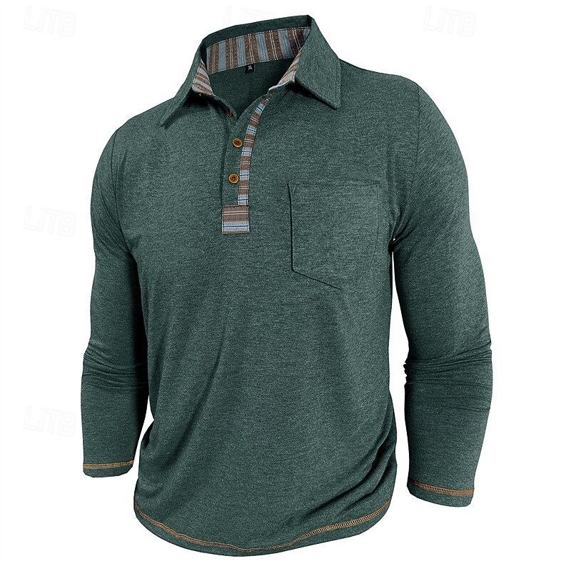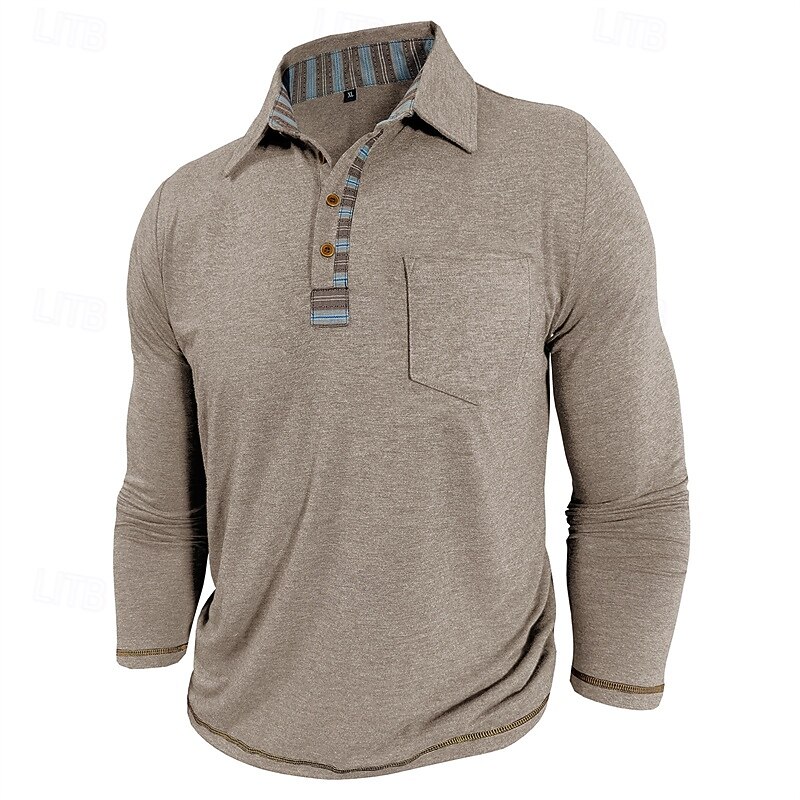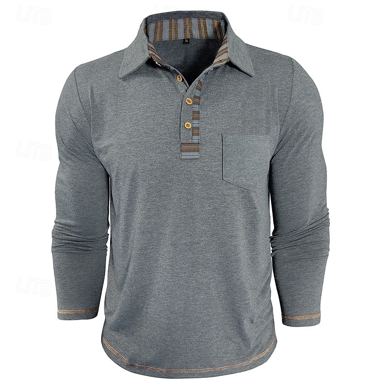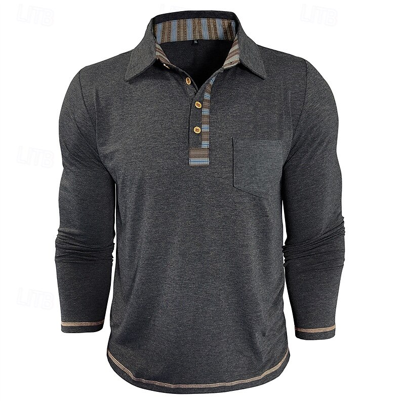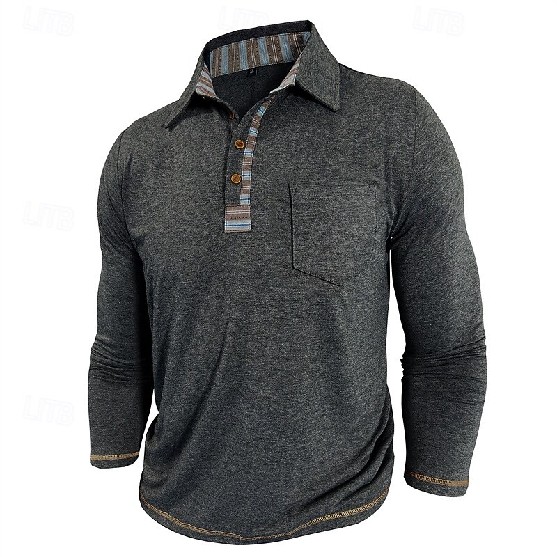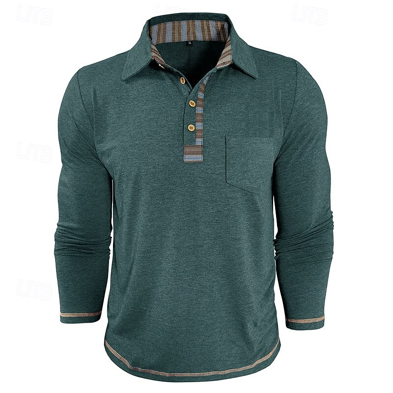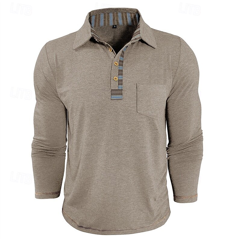 More information about Men's Golf Shirt Golf Polos Shirts Work Casual Lapel Long Sleeve Basic Modern Color Block Patchwork Buttons Spring Fall Regular Fit Apricot Navy Blue Blue Green Light Grey Dark Gray Golf Shirt