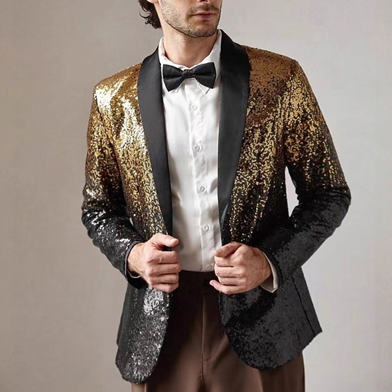 More information about Men's Blazer Business Cocktail Party Wedding Party Fashion Casual Spring Fall Polyester Gradient Sequins Pocket Comfortable Single Breasted Blazer Gold