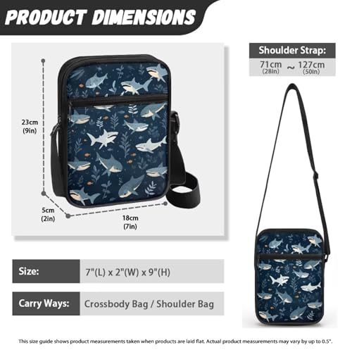 Shark Print Small Messenger Bag Satchel Cross Body Bags Multi-Use Shoulder Bag for Men Women 6