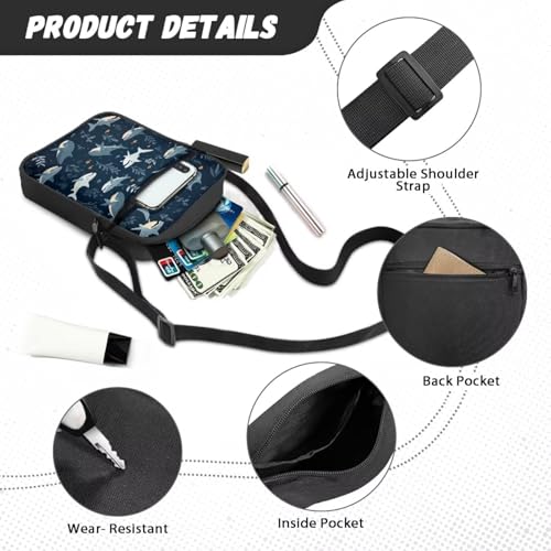 Shark Print Small Messenger Bag Satchel Cross Body Bags Multi-Use Shoulder Bag for Men Women 5