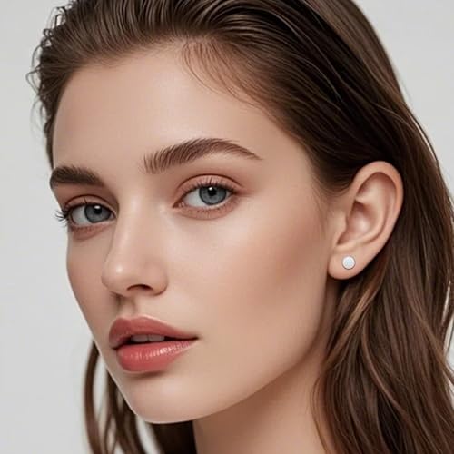 ZDE Women Earrings Threadless Flat Back Dot Earrings Titanium Hypoallergenic Cartilage Non-Nickel Black Push in Earrings Studs for Sensitive Ears Simple Classic Earstuds 7