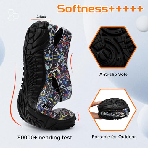 • ANTI-SLIP AND WEAR-RESISTANCE RUBBER SOLE: The anti-slip rubber sole, with an ergonomically molded, shock absorption performance cushioning separated protective toe guard. Excellent workmanship to prevent the seams around the toes fray and split within a short time