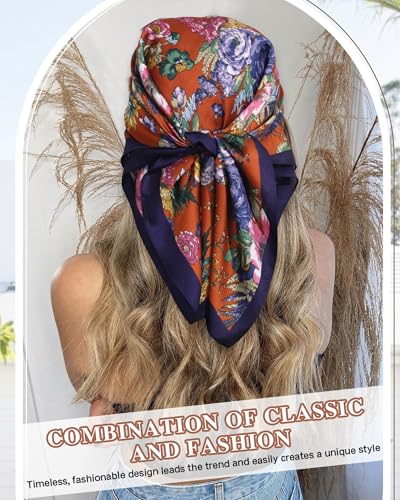 CHLINS 2 Pcs 27.5” Head Scarf for Women Satin Hair Scarf Silk Scarf Neck Scarf Square Hair Bandanas Hair Wraps 6