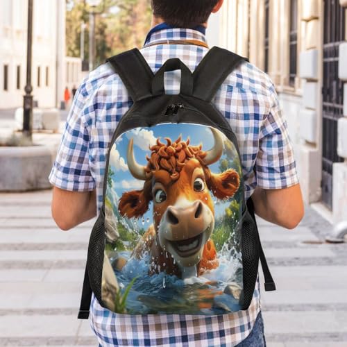 HOT ! Comfort Fit Unisex Cartoon Cow River Backpack Durable for Daily Commute & Travel Adventures 16 Inch