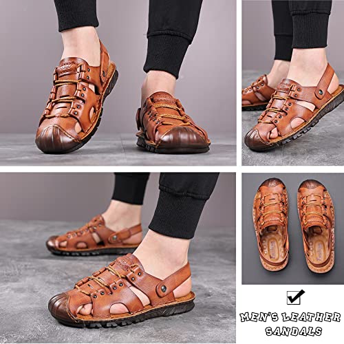 Men's Closed Toe Leather Sandal, Summer Outdoor Adjustable Fisherman Water Sandals, Walking Casual Sandals 5