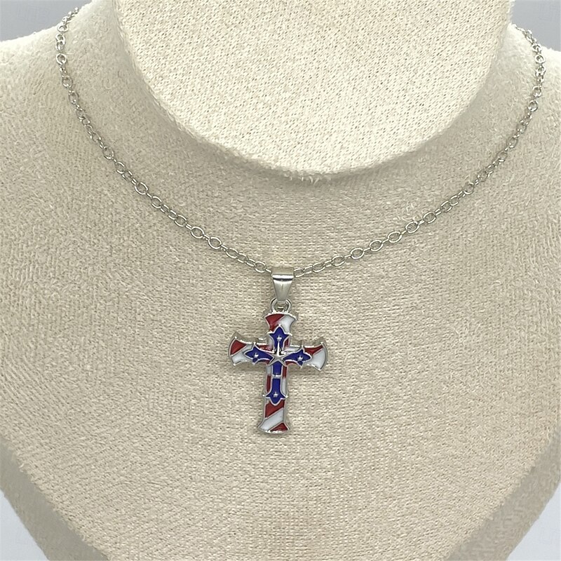 American Flag Patriotic Cross Religious Jewelry Pendant Necklace 11