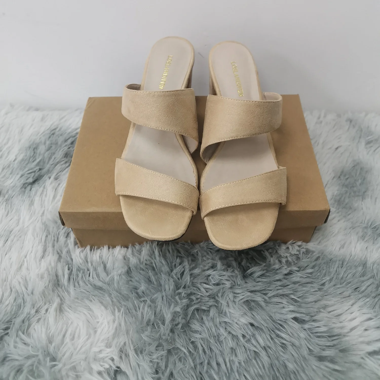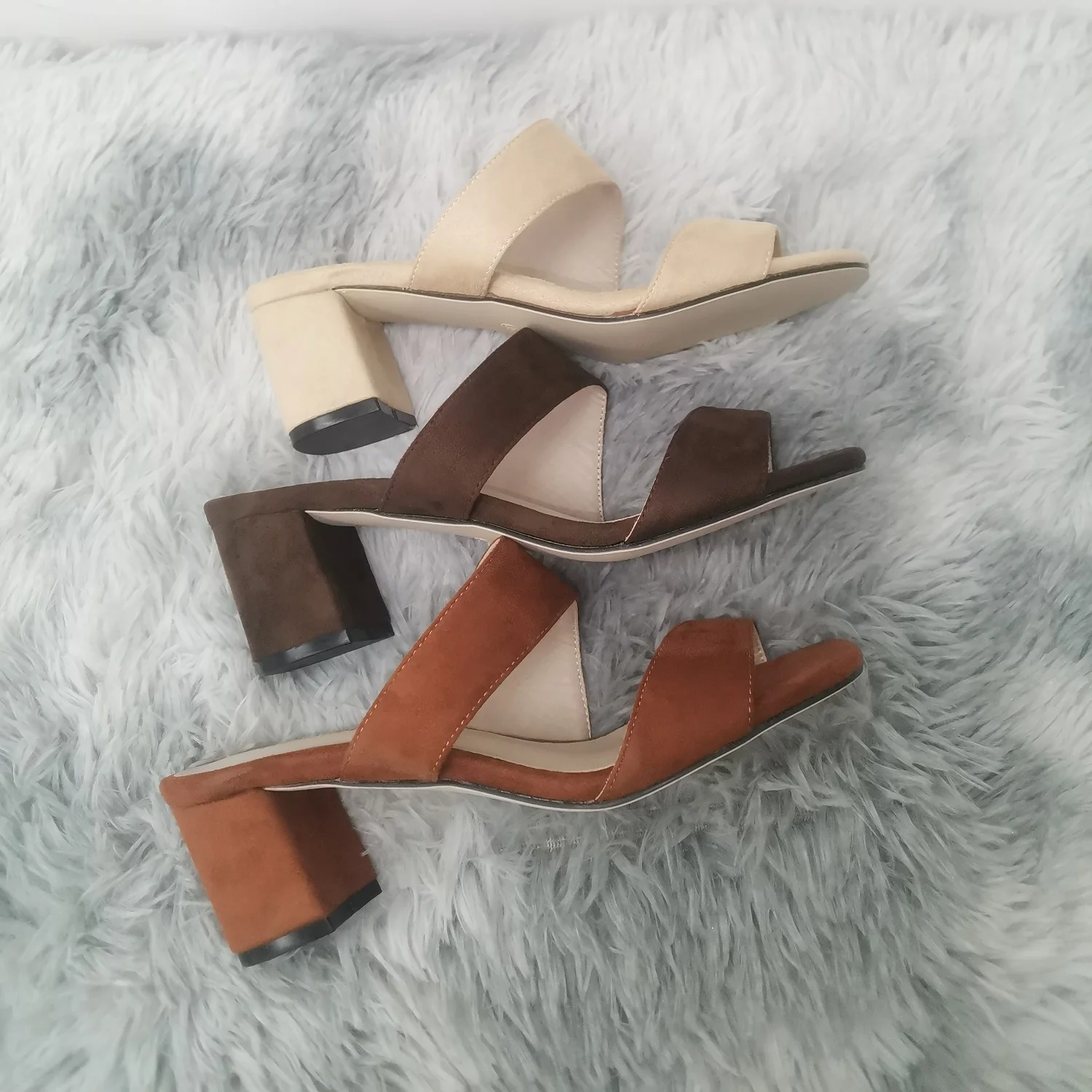SpecificationsChoice: YesClosure Type: SLIP-ONFashion Element: RomeHeel Height:?5.5CMHeel Type: Square heelItem Type: sandalsOccasion: CasualPattern Type: SolidUpper Material: flock